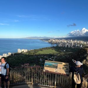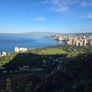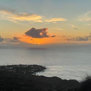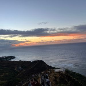 まだ真っ暗な中ダイヤモンドヘッドのゲートが開くまでの間、信じられない満天の星空と夜景が見れました、少しずつ明るくなる幻想的な中登頂スタートして、ゆっくりペースで30分で頂上に到着。雲がかかっていて太陽がのぼるのは見れなかったけど、また次も来てねって事だなと考えれば満足です。下山してから、まだ温かいマラサダを頂き食べました。