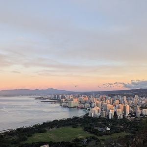 山頂からの朝日はとても綺麗でした。ワイキキ方面の景色も絶景でした。