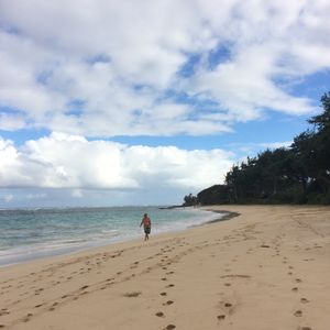 私達のサーフィンレッスンは、11時からでした。レッスン前にノースショアの有名なビーチを散歩しました。サーフィン経験者の夫は、とても良い思い出になったようです。