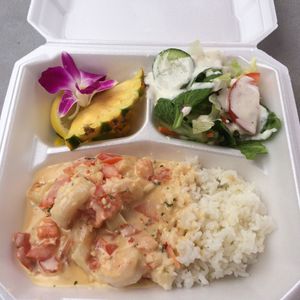 その後、マサさんとノースの海を眺めながらドライブ。各ポイントの説明をしてくれながらランチの相談。結局マサさんオススメのプレートランチ、Ted's BakeryでチキンBBQとガーリックシュリンプを食べましたがとても美味しくて大満足でした。満腹でしたが、パイも有名との事で食べてみたら凄く美味しいかったです!
