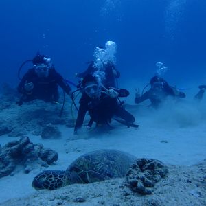 ウミガメをものすごく近くで見れて感動しました。インストラクターの方も丁寧に説明して下さり、楽しくダイビングすることができました。仲間と良い思い出が作れました。
