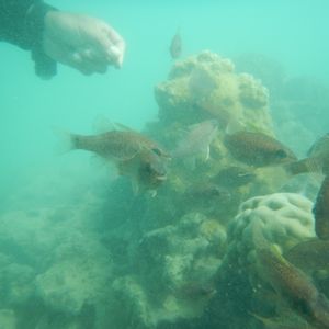 でも魚やイソギンチャク、サンゴ等もいて楽しかったです。事前にパンをくれるので、それを手渡しやちぎってあげることも出来ます。