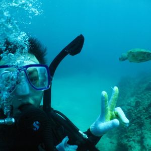 はじめてダイビングを体験しました。一緒に参加した人はダイビングライセンス所持者が多かったのですが、2回目のダイビングスポットでは海の底まで潜ることができて、ウミガメときらびやかな熱帯魚をみることができました。