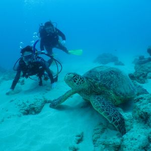 ここは、ホノルルからかなり離れたところまで連れて行ってくれて、その間に車の中で丁寧な説明。海がめも2匹見られたし、魚への餌付けもさせてもらいました。最後はあったかいお湯で体をあたためたり、スパムむすびやお茶を用意してくれたり、かなりきめ細かいサービスを心がけている素晴らしいダイビングショップです。次回もお願いしたいです。