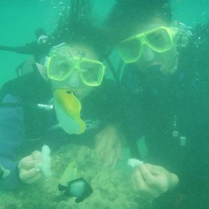 19日に妹夫婦便乗で体験ダイビングに参加させて頂きました。初めての体験でハラ?ドキ?でしたが、アツシさんの親切で迅速かつ丁寧なご指導、キョウコさんの包容力でとても楽しい時間を過ごせました。