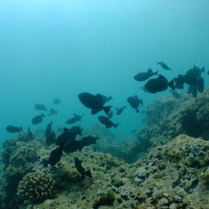 ハネムーンでハワイを訪れ12月20日にダイビングに参加させていただきました。雨期でしたが天気に恵まれ、この時期には珍しいと言われるくらい海の透明度が高く、ダイビングポイントへ向かう時にはイルカの大群に出会う事が出来たり、水面から40m下の沈没船を見る事が出来たりしました。海底ではハワイでしか見る事が出来ない魚や、海ガメに出会いました。海ガメはもう少し手を伸ばせば触れるくらいの距離まで近寄る事が出来て、海ガメを見たくてこのダイビングに参加したカレは大喜びで、ハネムーンの一番の思い出になったようです。