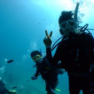 夫婦で、体験ダイビングに参加させて頂きました。二年ぶりのダイビング。。。ドキドキしながらの参加でしたが、スタッフの方々の丁寧な説明や指導、また絶妙なトークで不安や緊張もどこかへ・・・。本当に楽しかったです。もっともっと潜りたい!!。そんな素敵なダイビングにして頂きました