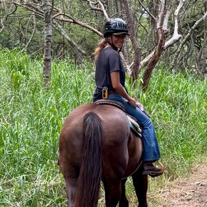 北海道で数回,2時間ほどの乗馬トレッキングをしたことがあり,ハワイの馬も同じ足や手綱での指示で,進む・止まる・曲がる,をしてくれます。万国共通。