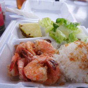 お昼はガーリックシュリンプも食べれてすごく美味しかったです。ただガーリックシュリンプのトラック近くは鶏やハトが多くて少し気になりました。色々食べる機会が多いので二人で一人前を食べてちょうどよかったです。