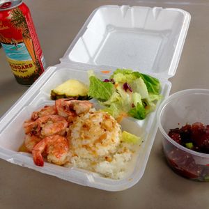 ガーリックシュリンプやアヒポキはとても美味しくて、お店チョイスがステキでした!アヒポキは生マグロでしたがあたらず、美味しくいただけました。