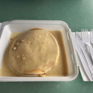 外のテーブルでパンケーキを食べる。まだ温かい。普通に美味しいけど、過大評価されすぎかなー。