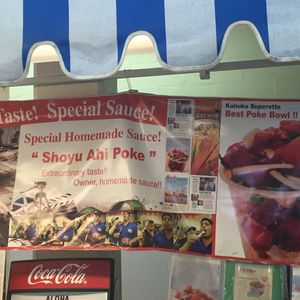 ガイドさんが注文してくれ、アヒポケ(醤油ポケ)5.28ドルを購入。