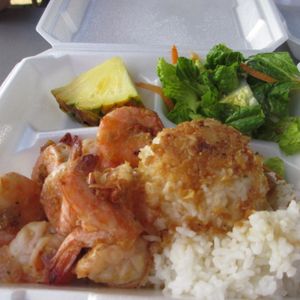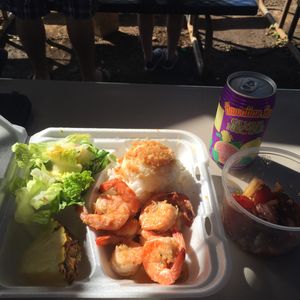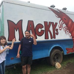 14:00集合。マッキーズのワゴンにてガーリックシュリンプ受取り。