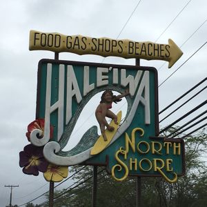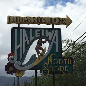 ハレイワ入り口にて女の子バージョンの看板撮影 。