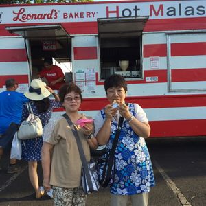 最後に帰り道でマラサダのワゴンに寄り、ひとり1個ずつ、買い食いしました。