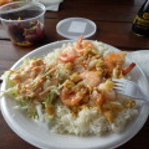 お待ちかねのランチは、ガーリック・シュリンプで、これもブーキモと同じように電話予約してくれましたので、直ぐに食べられました。アヒポケをつまみに、ビールで乾杯。ガーリック・シュリンプはガーリック、チリ(スパイシー)、レモンの3種類ありましたので、各種類をシェアしました。ご飯がしっかりと敷き詰められているので胃袋は満足を通り越します。