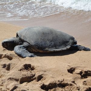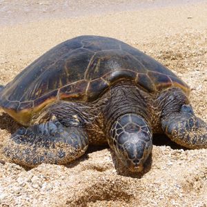 1mくらいのウミガメが砂浜で日向ぼっこ。こんなに近くで野生のウミガメを見るのは初めてでした。