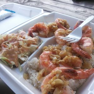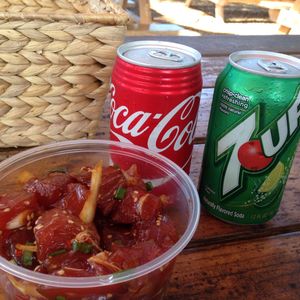 ローカルに愛されるアヒポケ(生マグロのにんにくしょうゆ漬け)とビールをテイクアウト。その後のガーリックシュリンプ屋さんで一緒にいただく。レモンシュリンプもさっぱりして好きでした。