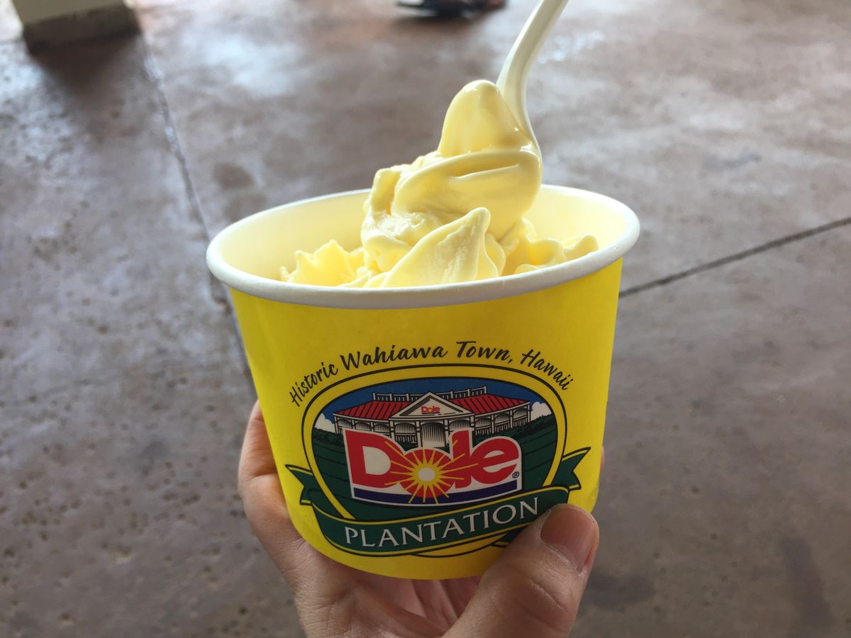 オアフ島のカイルア、ドール・プランテーション、ハレイワ、ワイケレアウトレットセンターという離れた場所にある複数の観光地を一日で周り、かつ、それぞれの観光地のグルメ:ブーツ&キモズのパンケーキ、ドール・プランテーションのアイス、ハレイワのガーリックシュリンプ、レナーズのマラサダを食べられるというすごいプラン。バスガイドのtoyoさんの話が面白く、また、いつも私たちのことを気にかけてくれてすごく良かったです。「写真撮りますよ!」とお声がけいただき何枚も撮っていただきました。