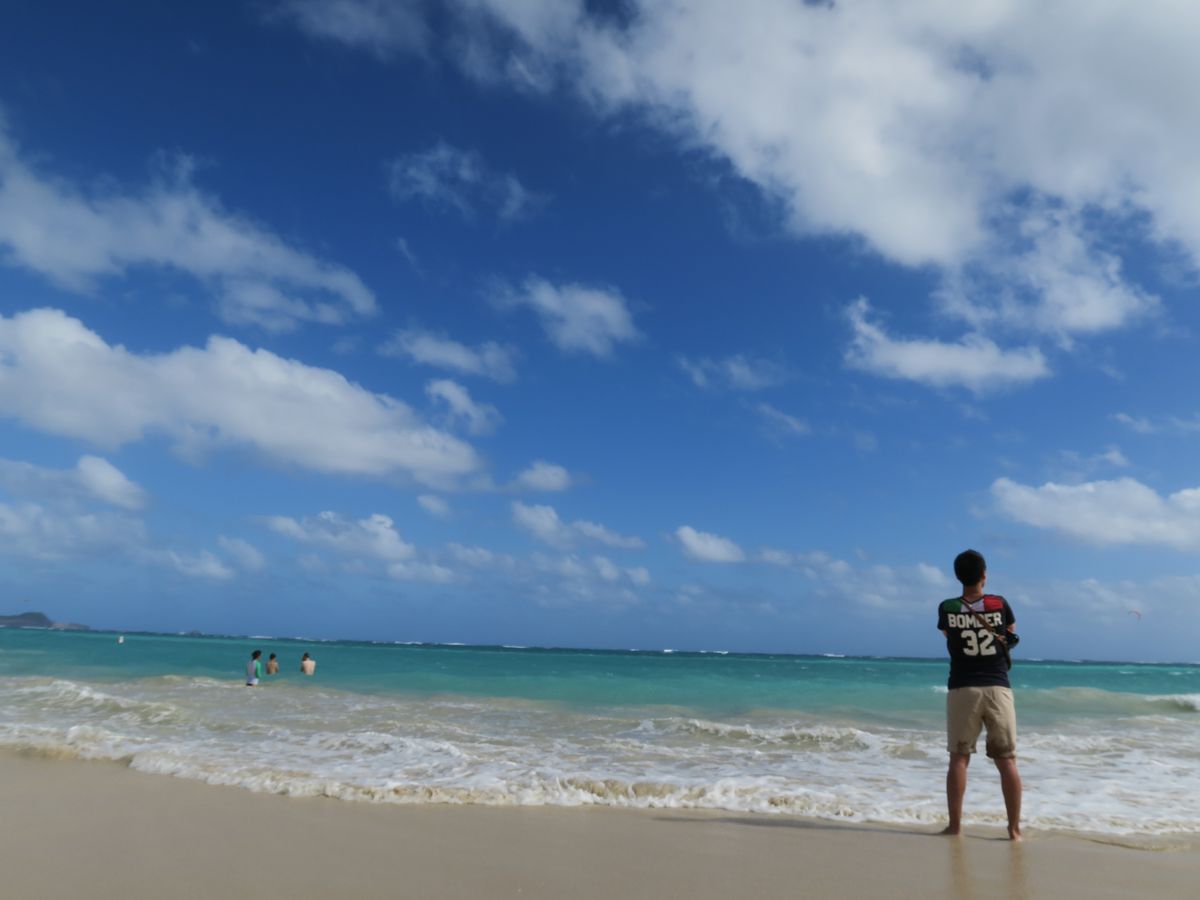 その後、レンタル自転車借りてカイルアビーチへ。風がとても強かったのですが、すっごく海が綺麗でした。時間がギリギリですが、是非いった方がいいです。綺麗です。