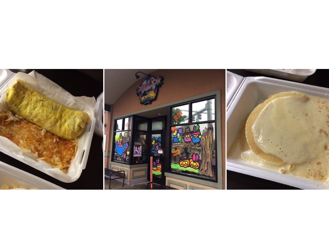 ブーツ&キモズのパンケーキとシーフードオムレツ