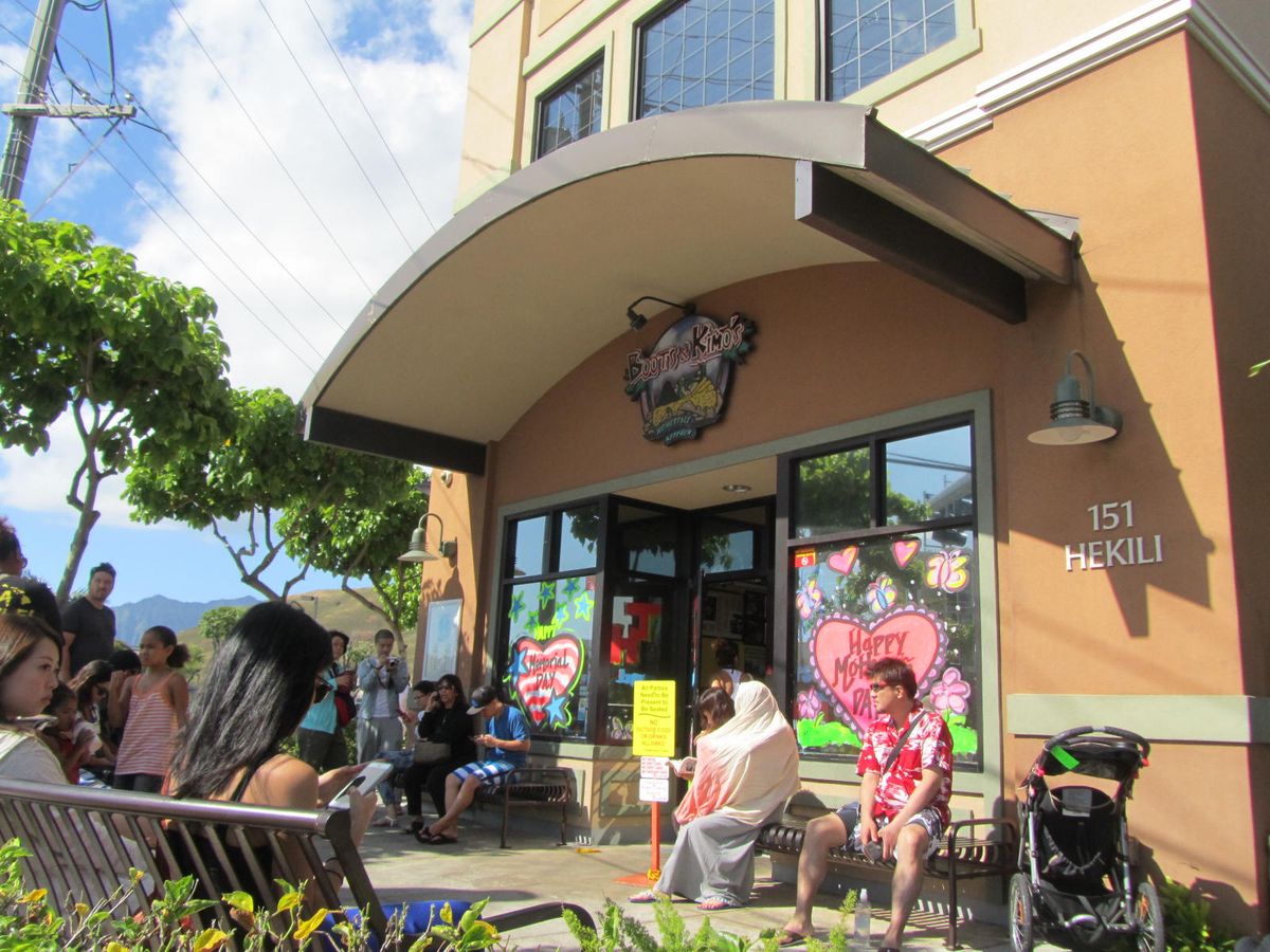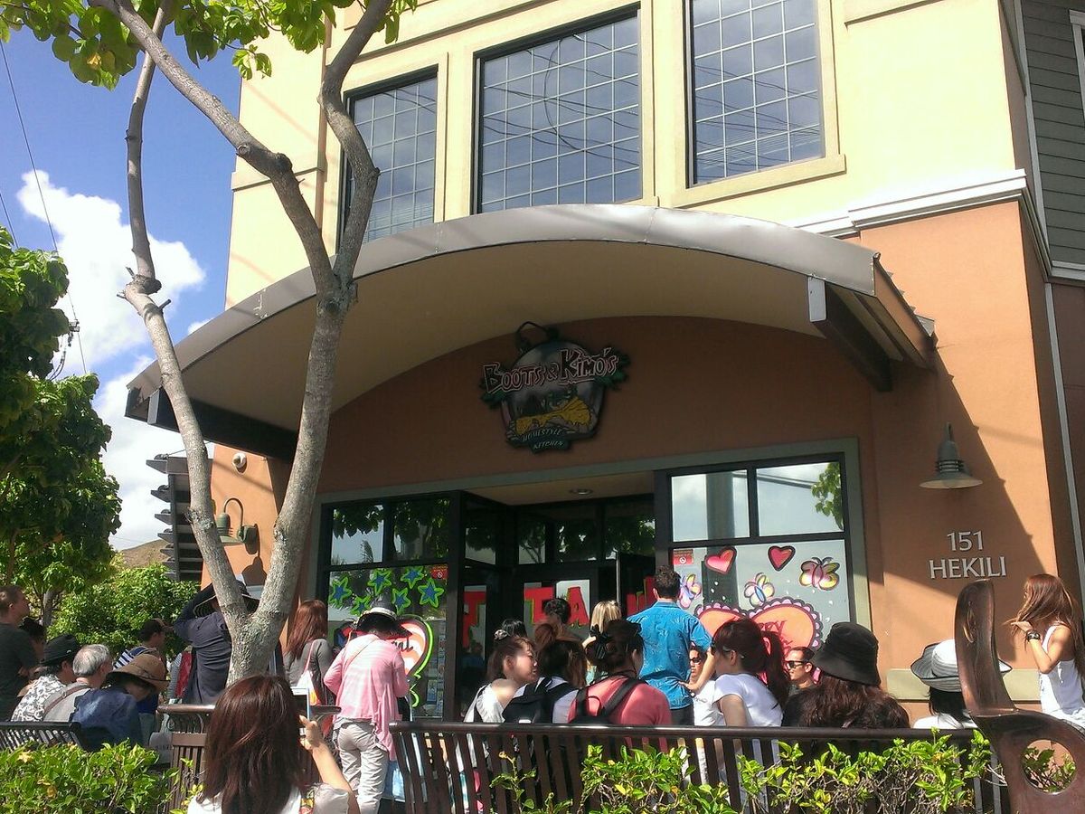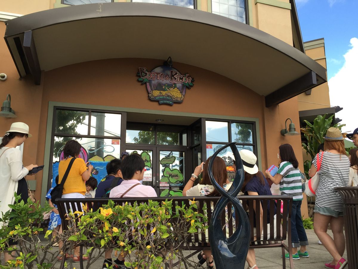 ①まずはカイルアの人気店ブーツ&キモズに到着。今日も大混雑でしたが