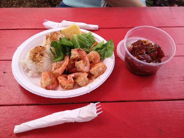 特に、パンケーキとガーリックシュリンプはガイドさんが事前に予約して下さるので、並ばずに食べられて助かります。