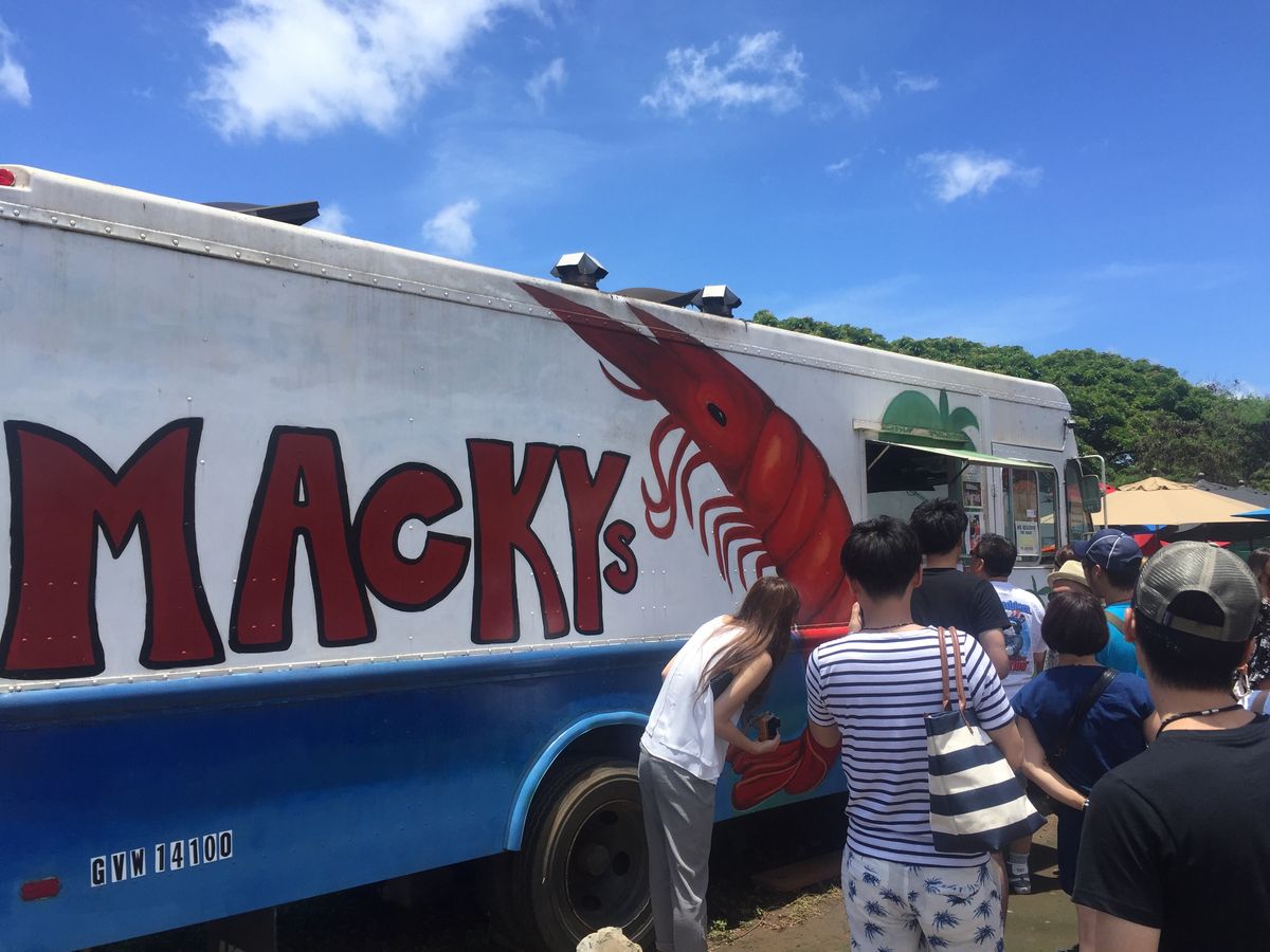 私たちが参加した日は2組しかおらず、ガイドのユーイチさんお奨めのガーリックシュリンプ屋さんに案内してくれたのですが、その日ちょうど調理機材の準備が間に合わず、やむなくマッキーズでのランチとなりました。ちょっと残念・・・