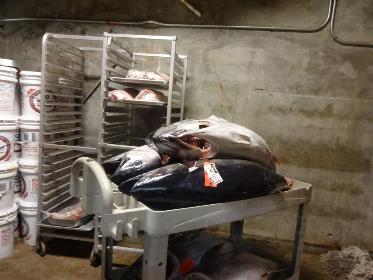 クーラーボックスにビールやマグロを入れておいてくれるのでそのあとで