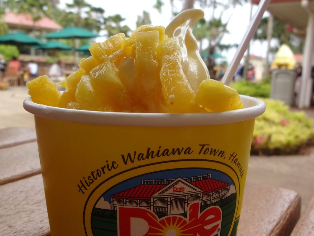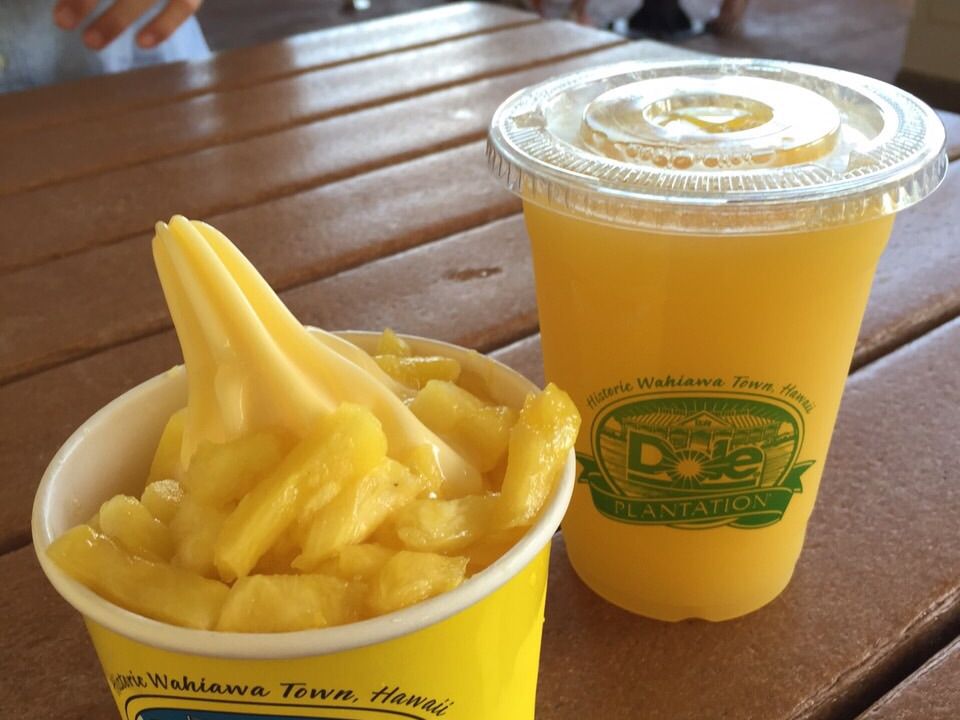 ドールプランテーションでは、並んでもパイナップルソフトクリームを食べてみてください。