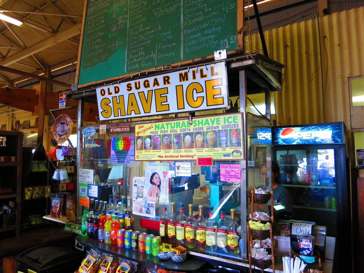 エネルギーを感じ、ハレイワでは娘とレインボーのシェイブアイスを食べ、