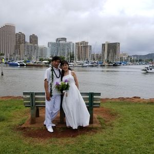 ハワイでの新婚旅行で、結婚式をやってなかったので写真だけでもと思い、このオプショナルツアーを申し込みました!