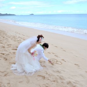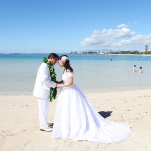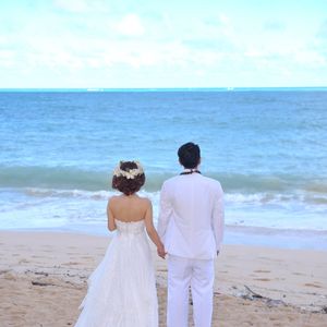 日本でホテルウェディングをしたので、ビーチフォトにあこがれて、ハネムーンの際に申込をしました。ちょっと微妙だったのは、ドレスサイズが小さいものが9号からしかなく、多少の調整はしてもらえますが、5号サイズの私には大きかった点です。写真を撮るだけなので、そこまでこだわりがなければ問題ないですが。。ヘアメイクは日本人の方で、上手で、希望通りにしていただきました。パーテーションもない部屋で一列でヘアメイクをするので、日本のウェディングのような特別感(御姫様扱い)みたいなのはありません。日本で挙式をやって、ビーチフォトの写真も欲しい!っていう人にはとってもおすすめだと思います。日本で前撮りをするより安くて、全然イメージの違う写真がとれたのでよかったです!あくまでちょっと贅沢なアクティビティーとしての位置付けなら、十分すぎるくらい満足です。ありがとうございました。