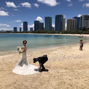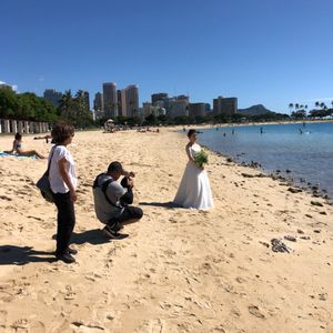 新婚旅行でハワイに来ました!後日に結婚式を控えており、前撮りとしてハワイでの素敵な写真を撮りたく、今回のツアーを予約させていただきました。短時間でお値段も安いプランだったので、正直どれくらいのクオリティなのか心配する部分がありましたが、送迎、衣装選び、ヘアメイクなど、どのスタッフの方も非常に丁寧で親切な方ばかりでした。日本人のスタッフさんが多く、安心して参加することができました。また、カメラマンの方も接しやすい方で、こちらの要望も快く受けてくださり、比較的短時間で質の高い写真をいっぱい撮っていただきました。ハワイでの綺麗な風景の写真を結婚式で使うことができ、非常に満足しています!また、新婚旅行の思い出としても残るので、本当にこちらのツアーに参加して良かったと思います!