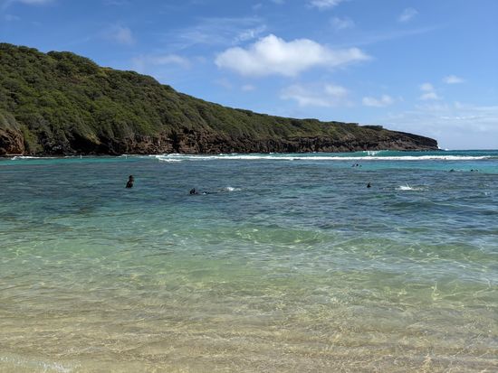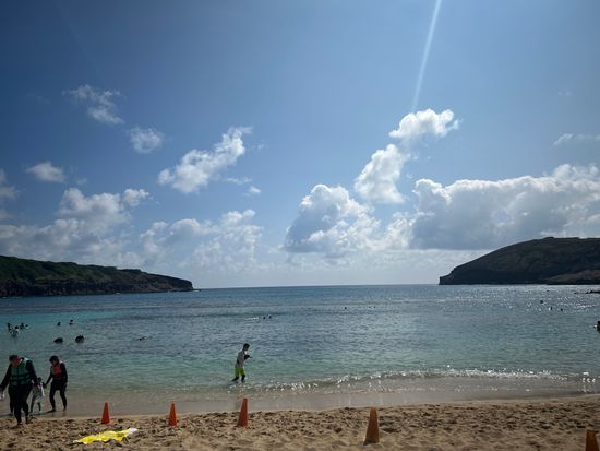 今回、こちらのツアーでハナウマ湾を訪れました。集合場所からスムーズにバスに乗って移動できたため、初めて訪れる場所でも安心して参加することができました。車内では、ハナウマ湾に入る際に視聴が必須のビデオが流れ、到着前から期待が高まりました。想像以上に海の色が美しく、透明度の高い海と自然に囲まれた景色に感動しました。シュノーケリングでは、浅瀬でも色とりどりの魚を見ることができ、海に入ることに慣れていない人でも楽しめる場所だと感じました。