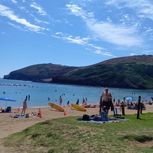 ワイキキのビーチとは全然違います。とても綺麗なビーチです。水も透き通っているし、魚も沢山います。その魚のサイズが大きいのです。日本の南の海の熱帯魚に比べて、全然大きいのです。ここでは、絶対にシュノーケリングを行うべきです。サンゴはあまり存在しなかったけど、岩場に行けば魚を確実に見ることができます。ビーチサイドは砂地と芝生です。シートを引けばくつろげます。このツアーは綺麗なバスで、ワイキキの中心地から30分くらいで現地まで連れて行ってくれます。バスの中でビデオも見せてくれるので、到着したら色々な手続きを省略して、すぐにビーチに行くことができます。皆様にお薦めです。
