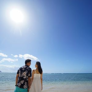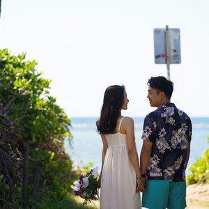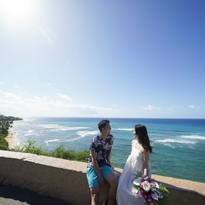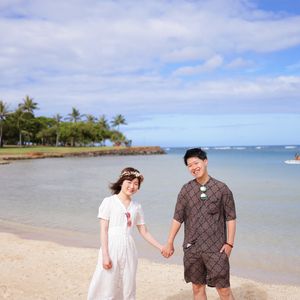 新婚旅行でハワイに訪れました。ウェディングドレスを着たウェディングフォトというより、アロハシャツやムームーで少しカジュアルな雰囲気での写真を希望していたところ、ご縁があり利用させて頂きました。