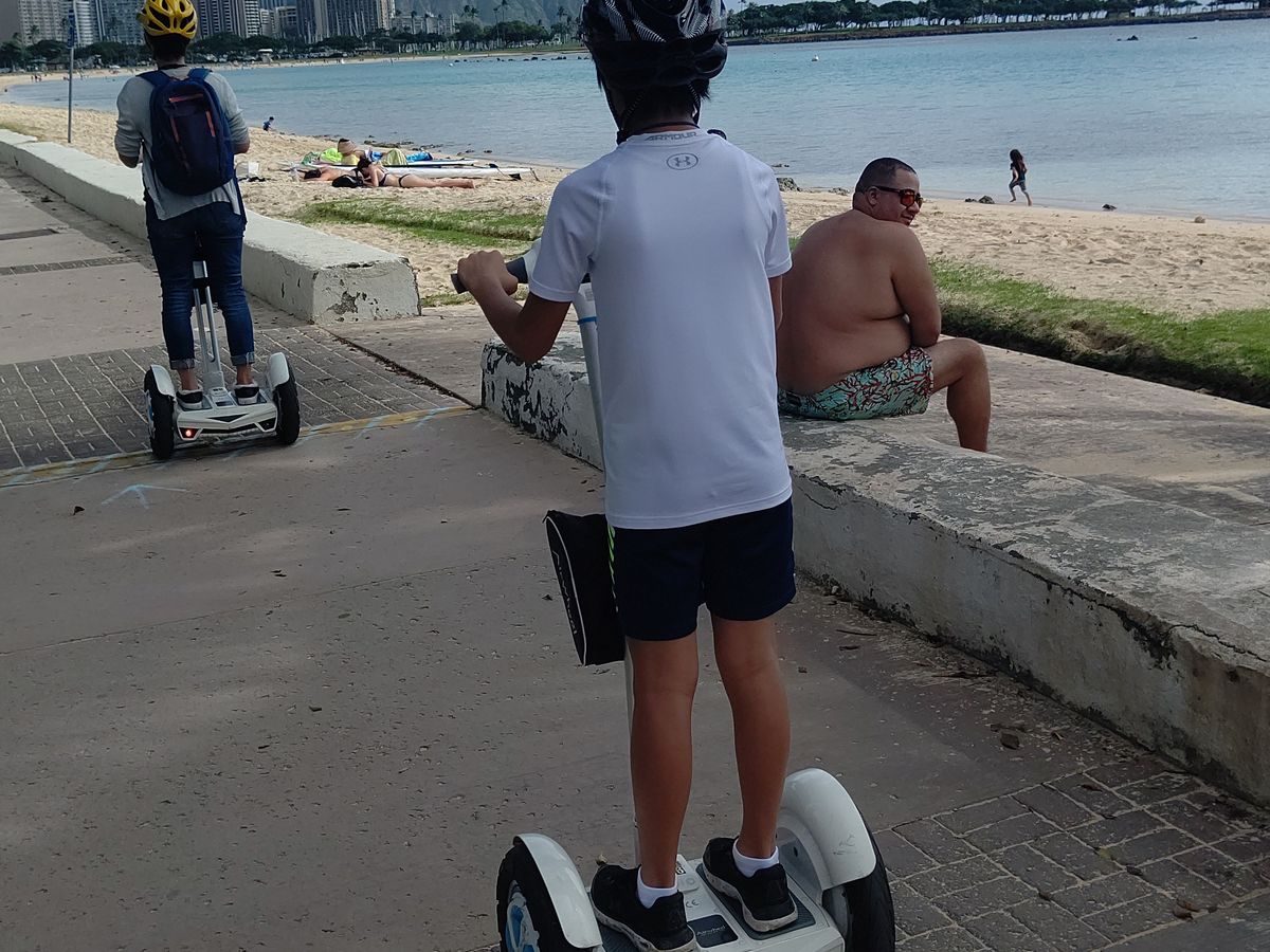 今回は家族3人で参加しました。エアウィールは乗るのが比較的簡単で、慣れるとスピードを出すこともできるので楽しかったです。ハワイのビーチの美しさ、風の心地よさを感じながら、カカアコのウォールアートを見に行くことができて、とってもよい体験になりました。