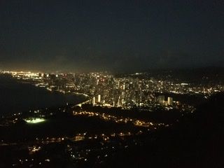 でも綺麗なサンライズと、まだ暗かったこともあり、ワイキキの夜景まで見られました。