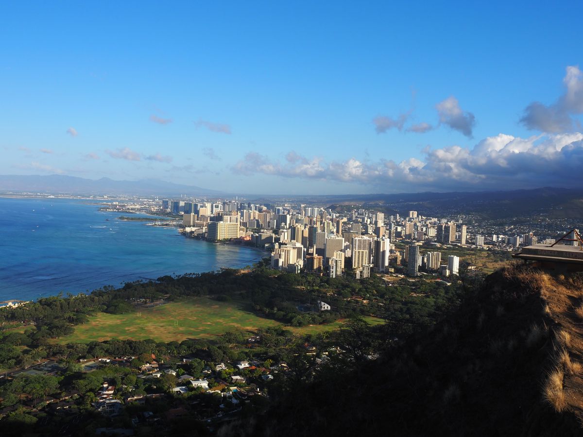見下ろすハワイの青い海は、素敵な風景でした。行ってみて良かったです!