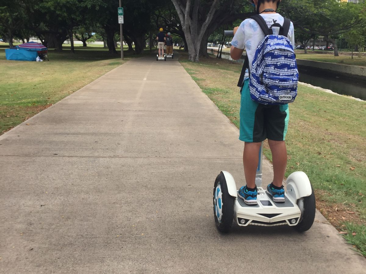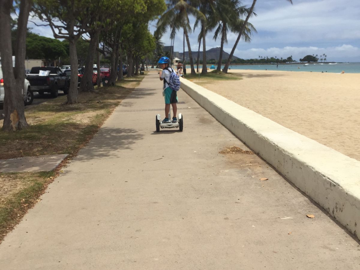 息子がハワイで一番やりたい事がセグウェイだったのでこちらに申込みました。まだ小学4年なので身長や体重の制限があってセグウェイはダメでしたがこのエアウィールならセグウェイよりちょっと小さく軽く操作も簡単で、セグウェイとそんなに変わりません。