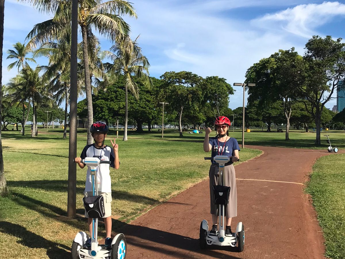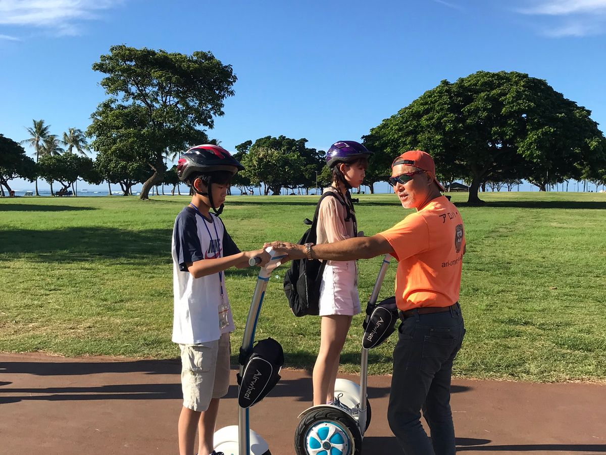 小学5年生を含む家族3名で利用しました。セグウェイは子供が乗れず諦めていたのですが、エアウィールは乗れると知り、直ぐに申し込みました。初心者でしたが、操作が簡単でしかも丁寧に乗り方を教えていただけるので10分も経たない内に出発できます。また、途中で少し狭い歩道や大きな道の横断歩道がありますが、インストラクターのお二人からその都度気をつけるところを細やかに指示いただけるので、安心して通ることができます。エアウィールはジョギングくらいのスピードが出るので、暑い日でも爽快。ウォールアート間は少し距離があるのですが、エアウィールだと素早く移動できるのでとても便利です。コースの終盤は海沿いの公園を走り抜けました。この頃には乗り方に慣れているので、周りの景色を眺めながら心地良くラストランできます。またぜひ利用したいです。