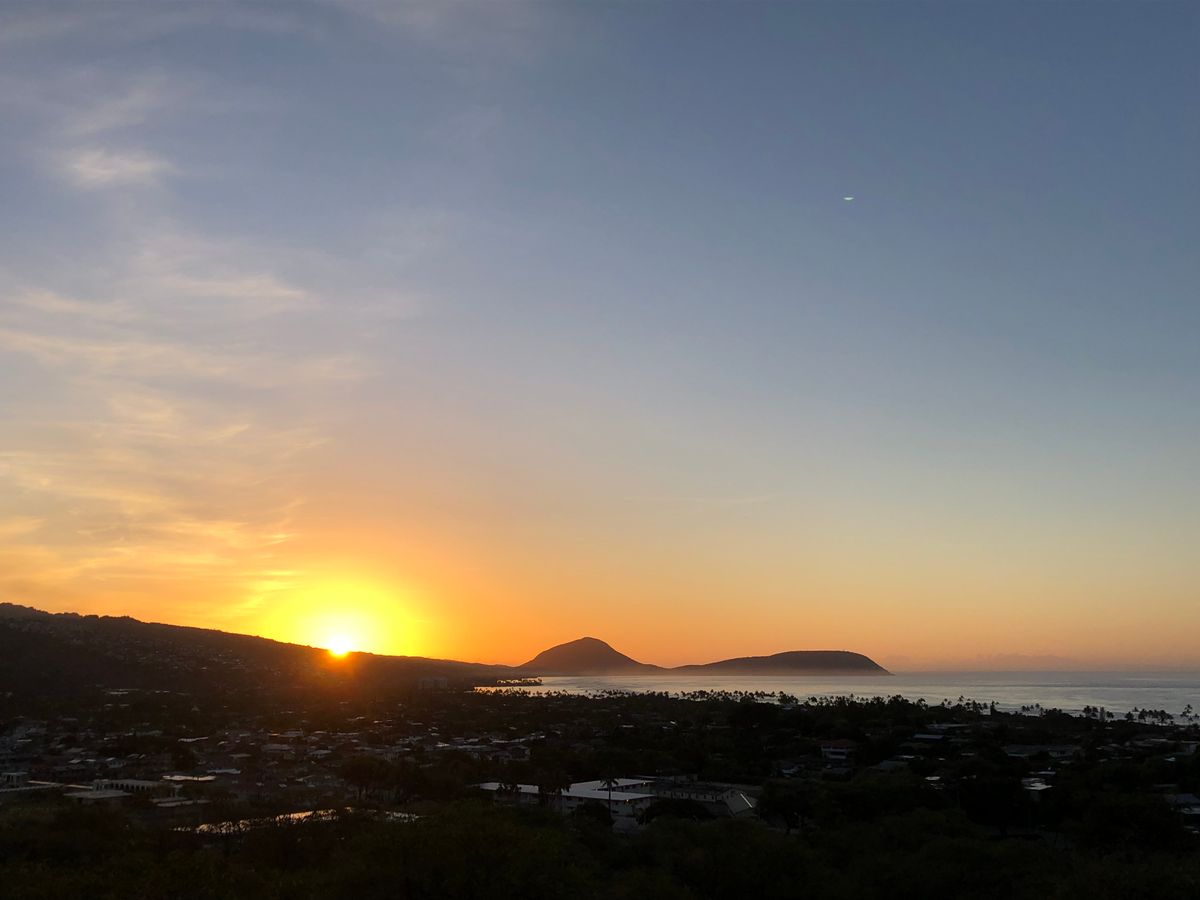 最初はダイヤモンドヘッドは考えていなかったのですが、友人にオススメしてくれたので登ることにしました。他にも沢山行ってみたい場所があり、でもマラサダは食べたい…そこでこのツアーを発見!時間のない最終日に参加しても飛行機にも間に合うしピッタリだと思いマラサダ付きのプランに決めました。ホテル近くで集合。移動して、説明があり、日の入りが6時頃だったので、登る前にそこで朝日を見ました。いざ出発、キツいかと思ってたけど、運動不足の私でも結構余裕。でも最後の階段がキツくて一気に疲れました(笑)でもその後見た景色はキレイでした!7時半にはバスに集合だったので早めに登って、早めに下山しました。下山したら温かいマラサダを頂きました。美味しかったです!登山証明書をもらい、記念撮影してもらって、まだ少し時間があったので、パイナップルや、ココナッツジュースなどの販売店があるので、そこでジュースを飲みました。ホテルには8時頃着いて、時間も全然間に合いました!旅行最終日に気持ち良く帰ることが出来ました!