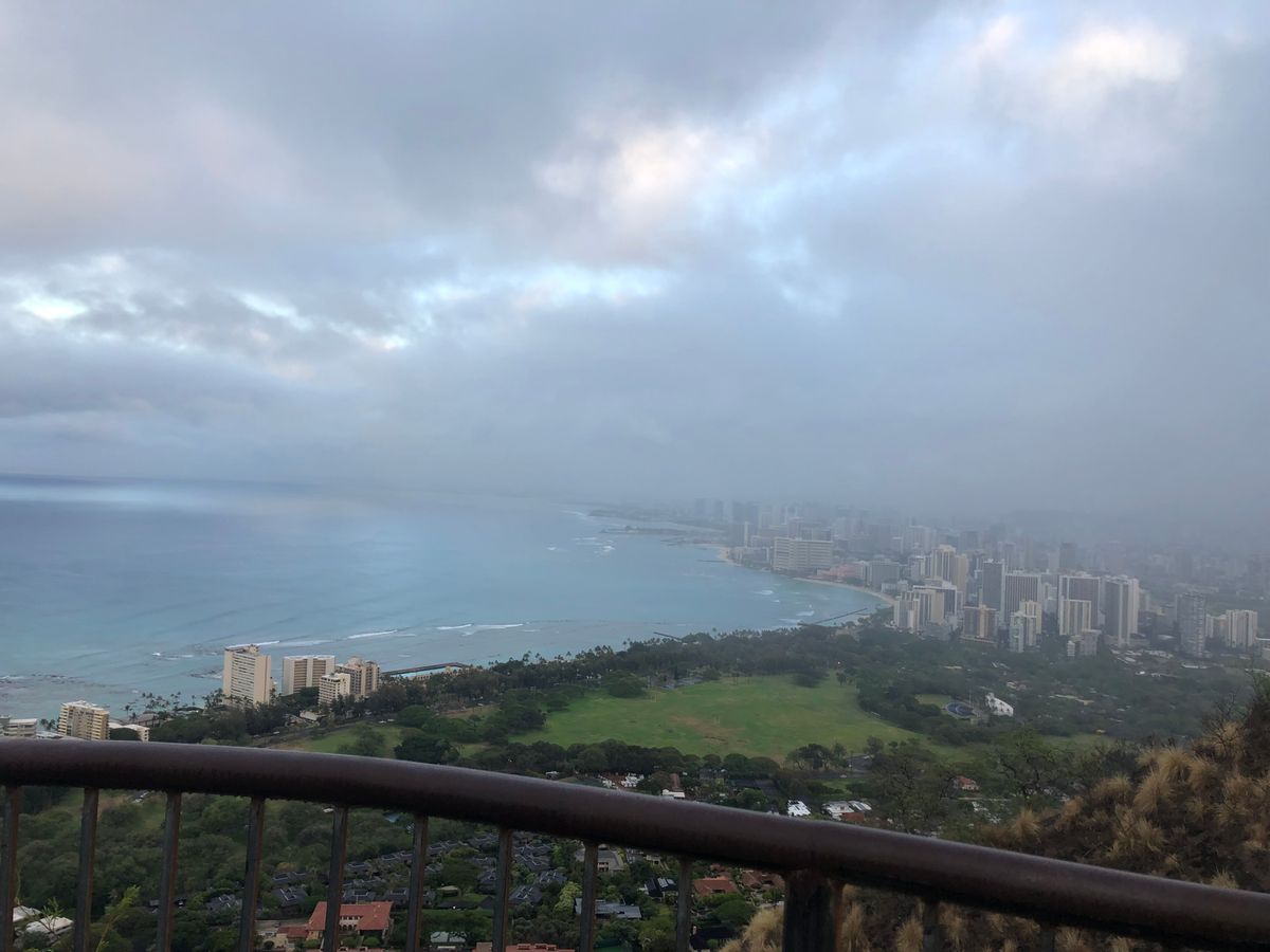 ダイアモンドヘッドの登頂は正直小雨で、足場も少しぬれて滑りやすく、景色も霞んでいましたが達成感があり、すれ違う人々が挨拶してくれたのが気持ちよい朝にしてくれました。