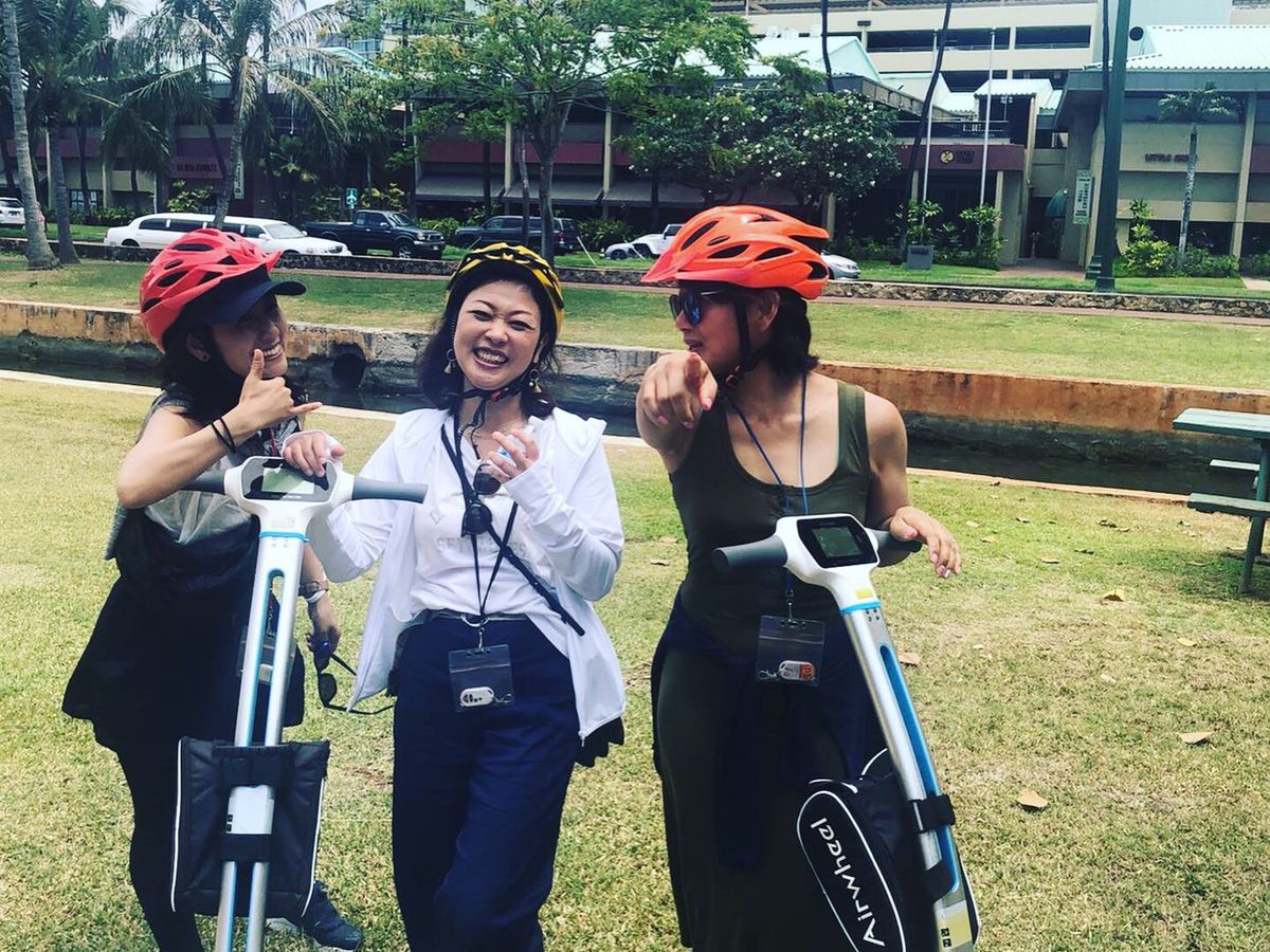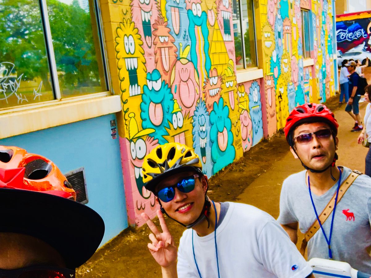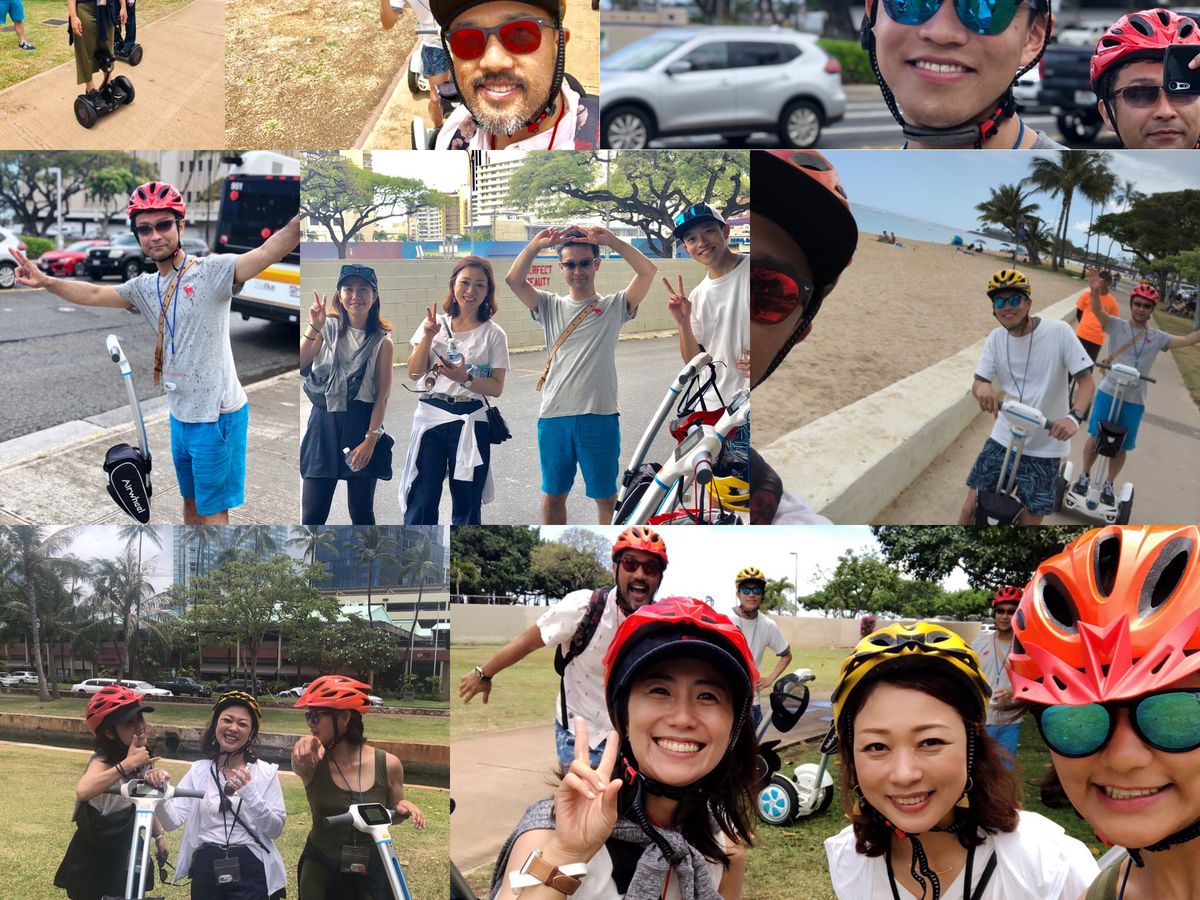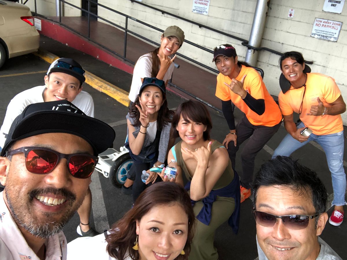 ホテルのピックアップから送迎の車で15分程度で、ツアー事務所に到着。大人8人での参加でしたが、インストラクターは3人。最初の練習からツアーの間、ずっといろんな話をしながら楽しく親切にエスコートしてくれました^_^途中のお楽しみグルメは、男子がハンクスのホットドッグ、女子はアサイボウルでしたが、今まで行ったことがなかったワード地区のおしゃれなお店で、インスタ映えする写真がたくさん撮れました^_^
