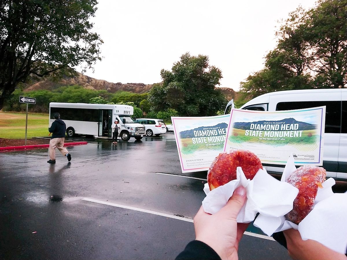 4度目のハワイにて初めてのダイヤモンドヘッド。1月の下旬でも暖かいハワイを想像してましたがこの日は北風と雨でとても寒かったです。この時期の登山はレインコートや防寒具が必要だと思いました!今度は晴れてるときに参加したいです!