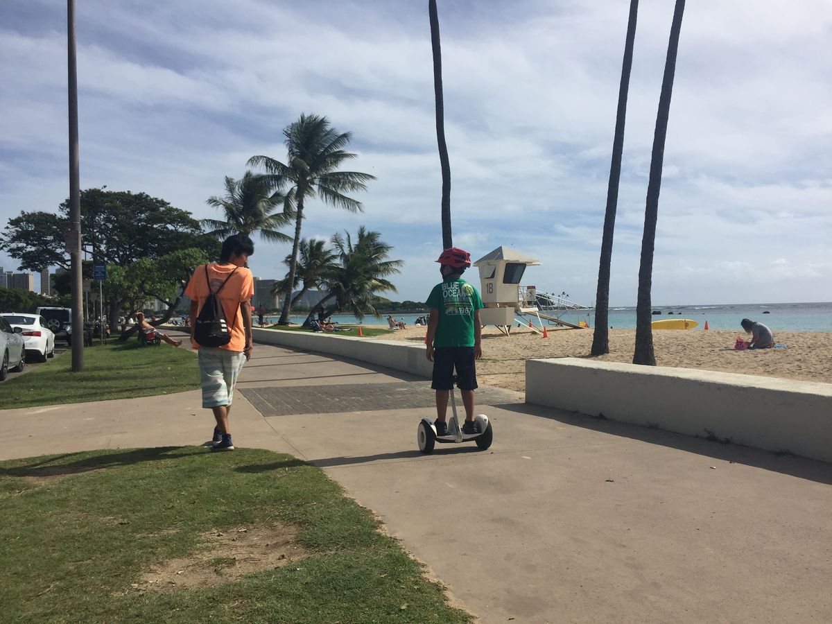 90分コースだったのですが、自由時間があって、アラモアナ公園の中を自由にエアウィール(セグウェイ)で散策できるので、90分コースがおススメです。