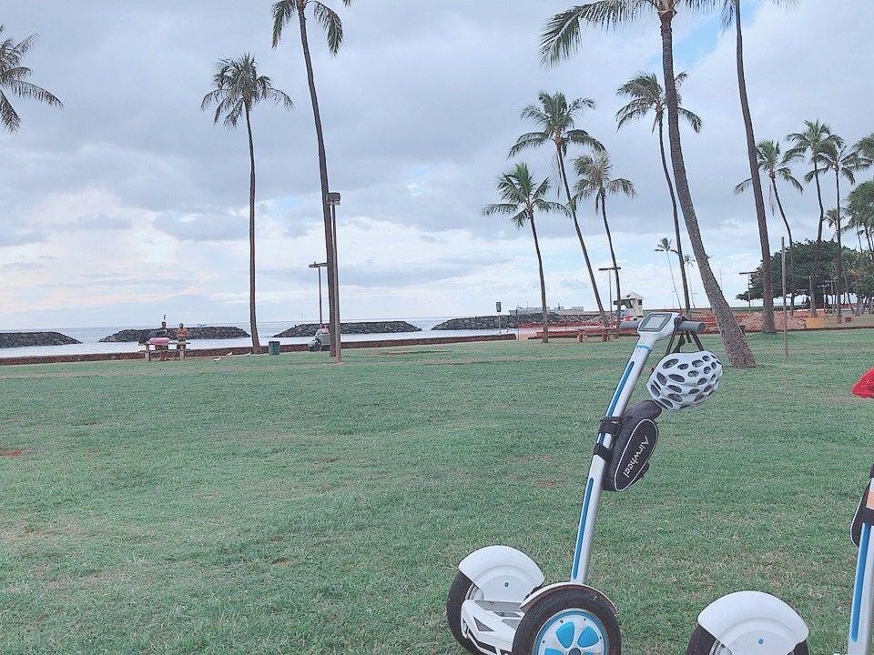 家族3人での参加。アラモアナパークではインストラクターさんの乗っている