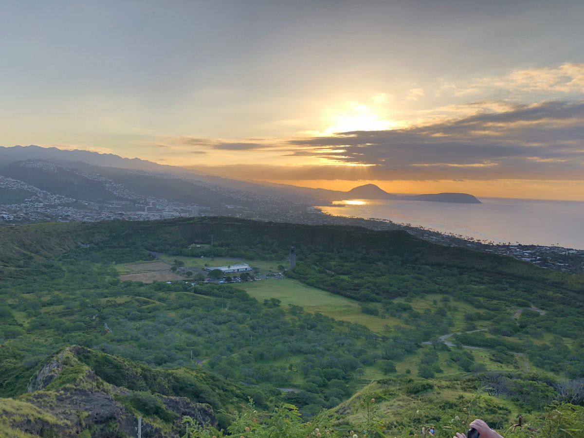 ハワイ(オアフ島)には3回行ってるけどダイヤモンドベッドに登山した事がなく今回家族で参加しました。日の出ハイキングと言う名前は無理がありますね。公園の駐車場オープンが6時、5月日の出は6:25。登山には30-40分かかります。登山中の景色は良いし、他の方の書き込みを読み長袖を持って行っていたので本当に素晴らし思い出が出来ました。