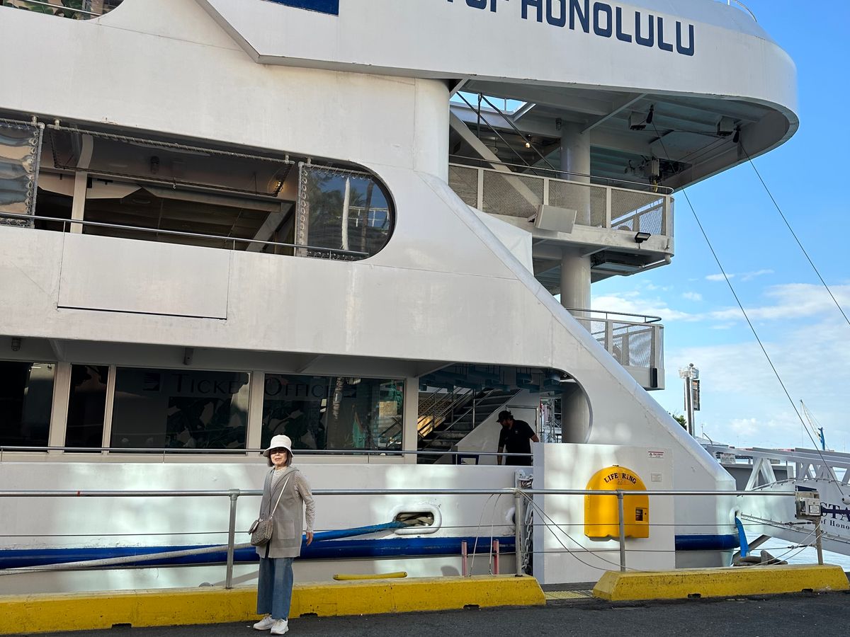 スターオブホノルルに乗船してホエールウォッチ参加しました 残念ながら当日は見れませんでした。8:45集合でしたがホテルを早めに出てUberで 妻が船酔いが嫌なのでスターオブホノルルにしました